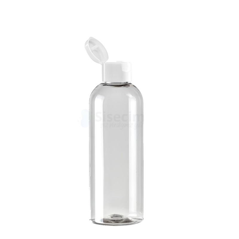 200 ML Plastik Pet Şişe Şeffaf Boş Pet Şişe AS 24 Ağız Beyaz Fliptop Kapaklı Şişe