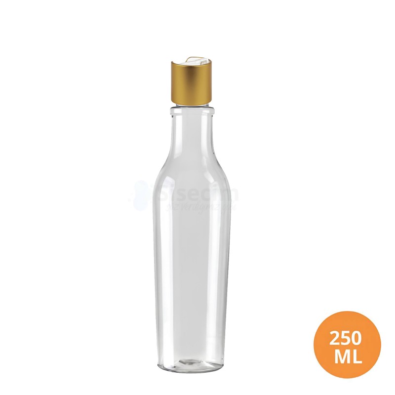 250 ML Plastik Pet Şişe Şeffaf Boş Pet Şişe AT 24 Gold Mat Disctop Kapaklı Şişe