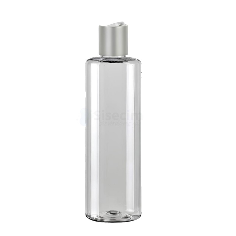 250 ML Plastik Pet Şişe Şeffaf Boş Pet Şişe Yel 24 Gümüş Mat Disctop Kapaklı Şişe