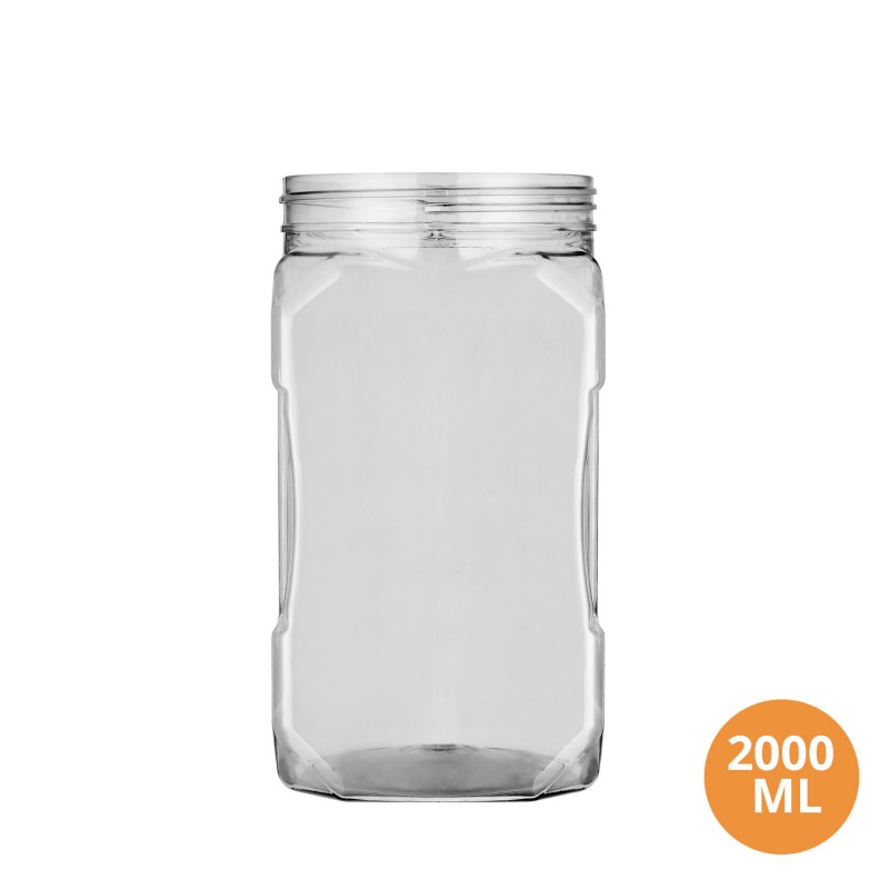 Toptan 2000 ML Küt Köşeli Gıda Uyumlu Boş Plastik Pet Kavanoz 100 Ağız 018
