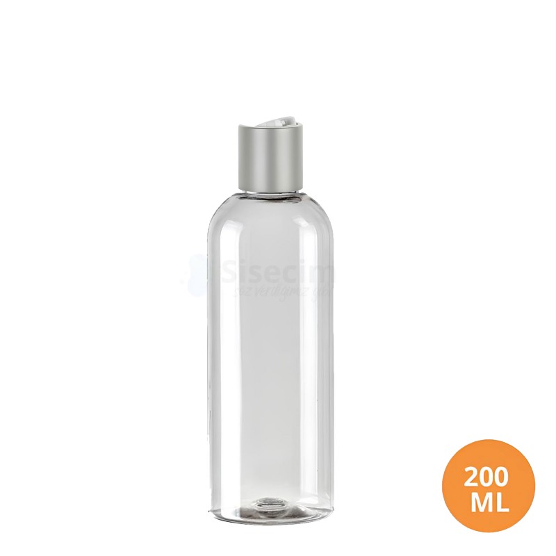 200 ML Plastik Pet Şişe Şeffaf Boş Pet Şişe AS 24 Gümüş Mat Disctop Kapaklı Şişe