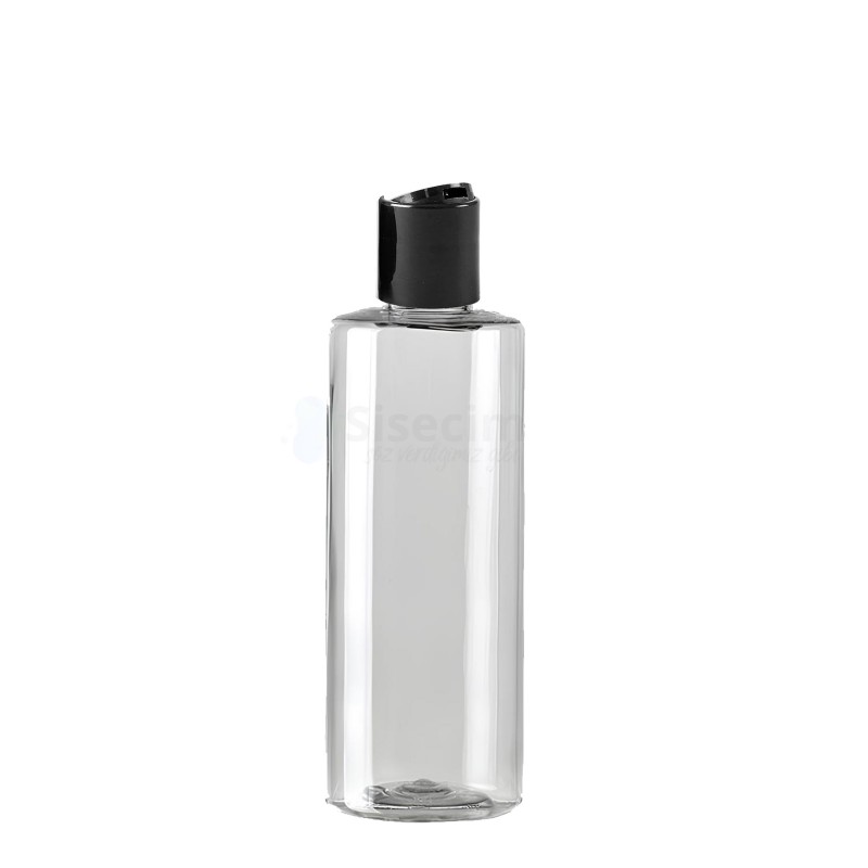 200 ML Plastik Pet Şişe Şeffaf Boş Pet Şişe Yel 24 Siyah Disctop Kapaklı Şişe