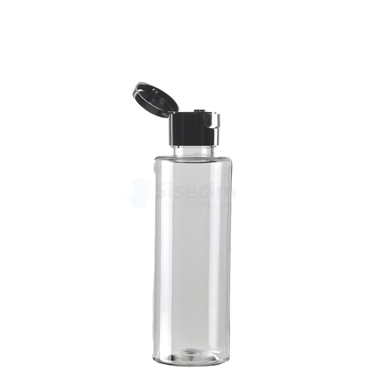 100 ML Plastik Pet Şişe Şeffaf Boş Pet Şişe Yel 24 Ağız Siyah Fliptop Kapaklı Şişe