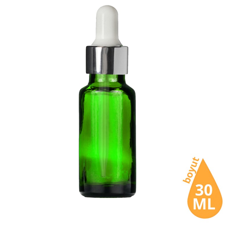Toptan 30 ML Yeşil Cam Damlalıklı Dropper Şişe Gümüş Beyaz Cam Damlalıklı Takım